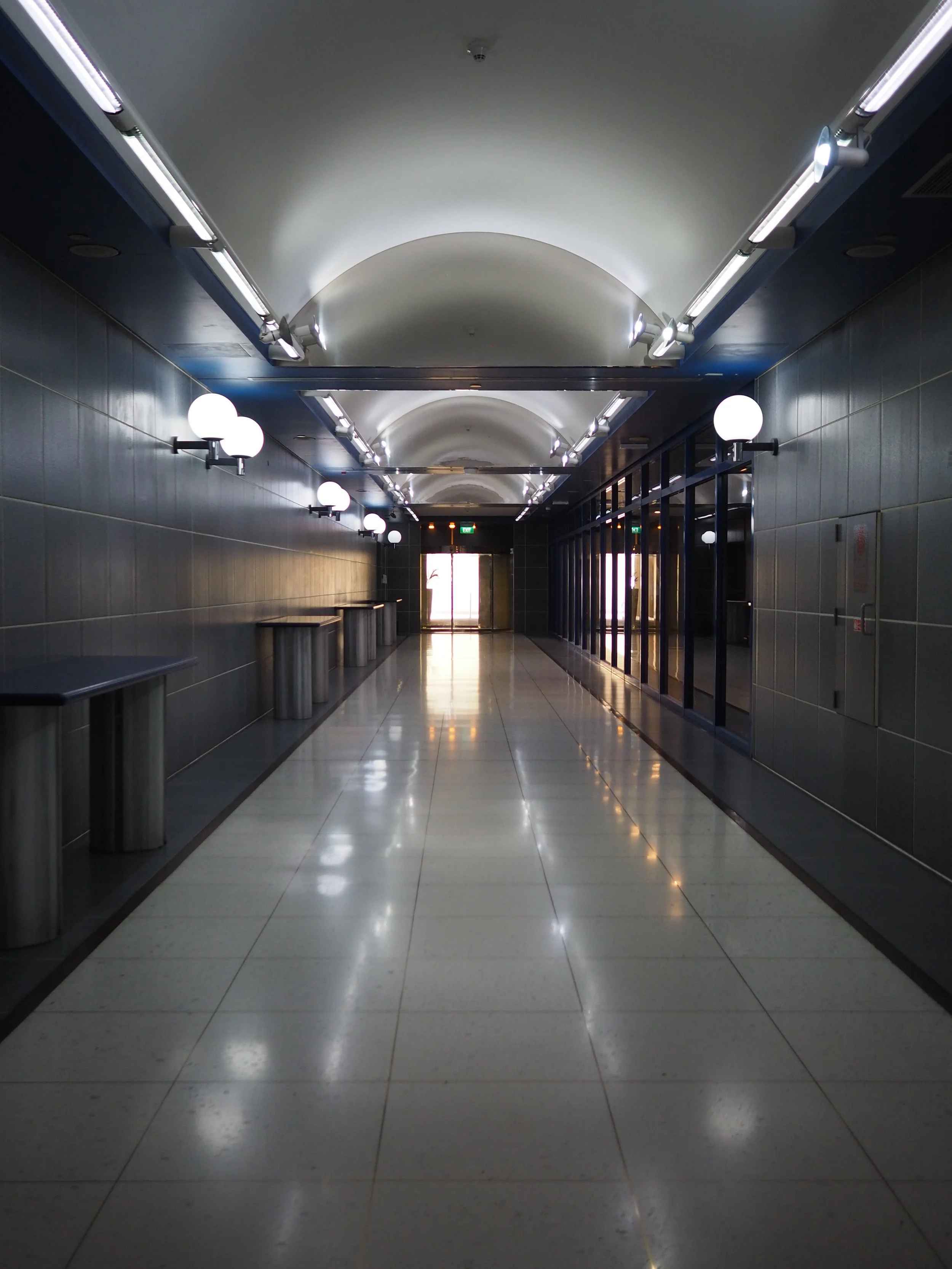 Gdy pierwszego wieczoru wychodzę z pokoju poszukać restauracji, błądzę - przegapiam windy i galeriowy korytarz tego ogromnego obiektu kończy się nagle ślepym zaułkiem. Jedynym elementem, który daje mi nadzieję na to, że nie będę musiała nadrabiać niepotrzebnie długich metrów korytarza, jest wyjście ewakuacyjne. Niepewnie otwieram drzwi, które okazują się swoistym przejściem do Narni. Z nowoczesnych przestrzeni stworzonych przez mlode emirackie talenty, ląduje prosto w Abu Dhabi lat dziewięćdziesiątych. Jest tu pusto, oprócz mnie zdaje się nie być tu nikogo. Sciany i podłogi obłożone są niebotycznymi ilościami szarego marmuru. Oprócz niego króluje tu stal nierdzewna, zrobiona na wysoki połysk, i małe ilości ciemnego drewna, głównie w formie gablot, w których wystawione są trofea i militaria Sił Zbrojnych ZEA.